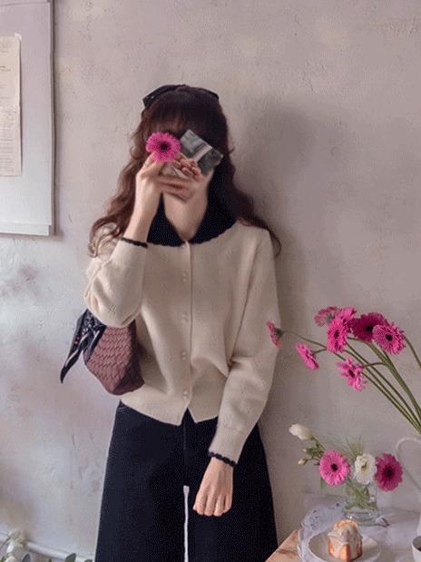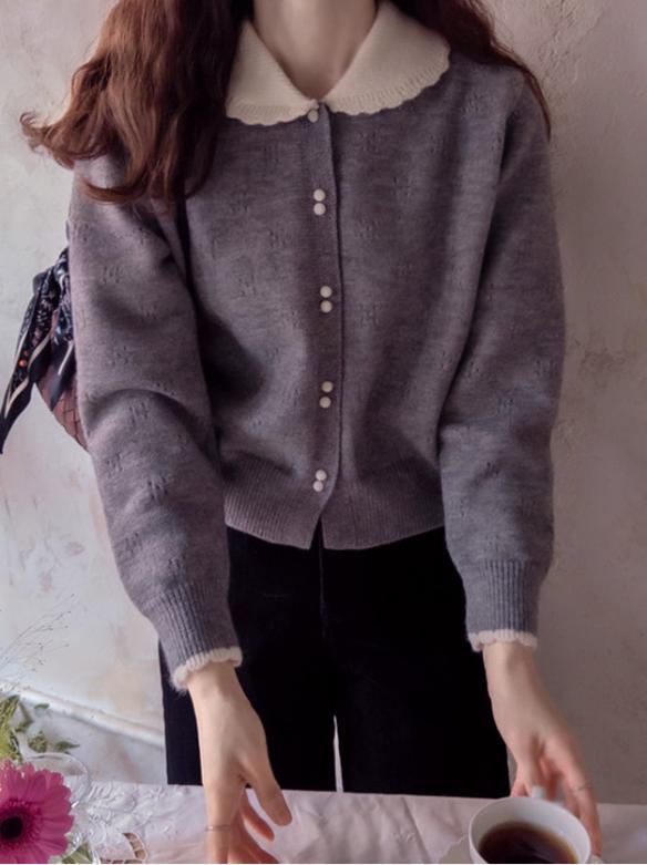 正韓 柔軟波浪領厚針織開襟外套