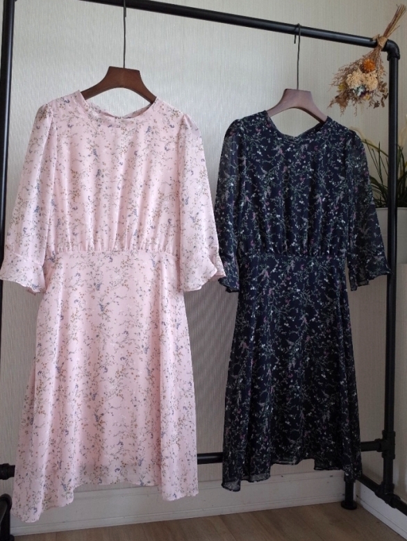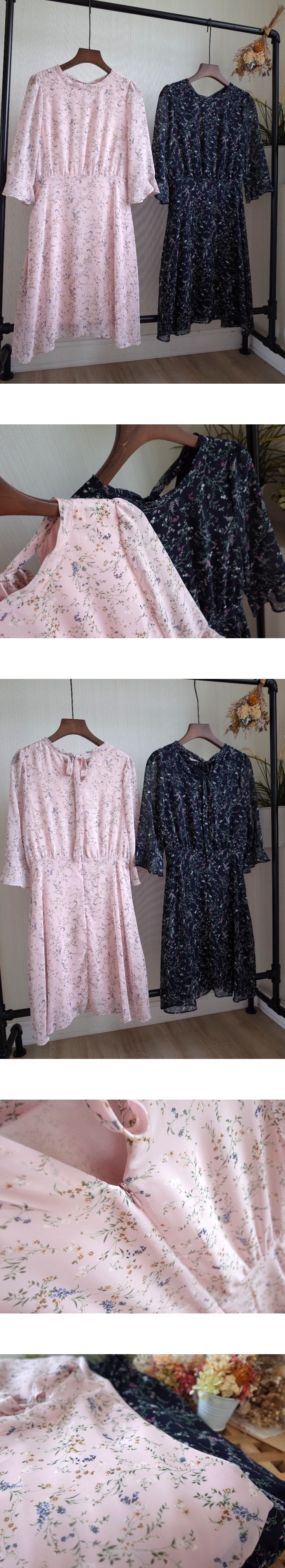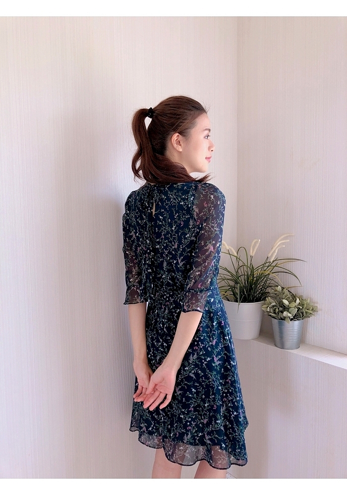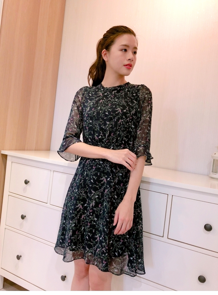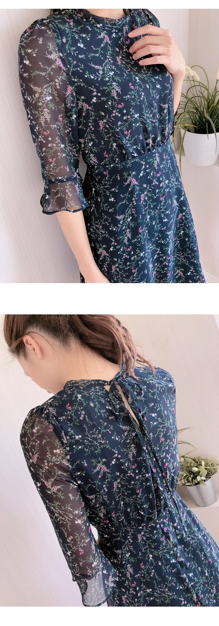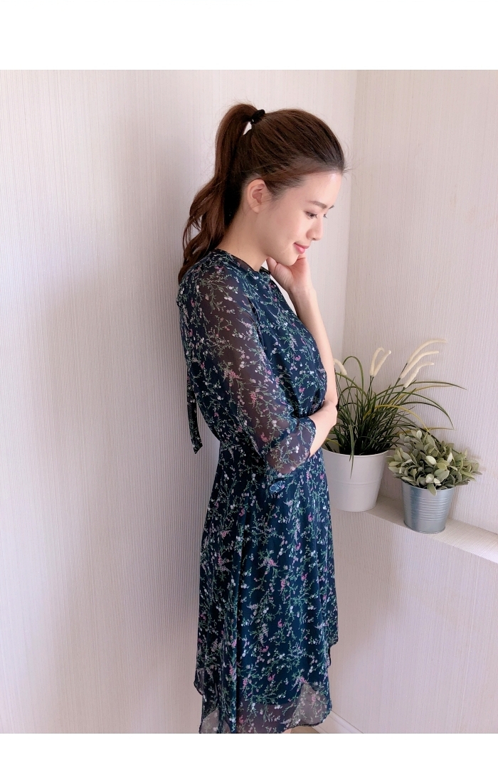 正韓 自留大推 超美小花腰身雪紡洋裝