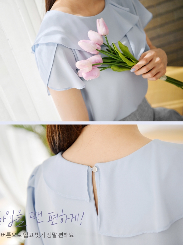特 限量白1 正韓 小翻領斜荷葉花苞袖雪紡上衣
