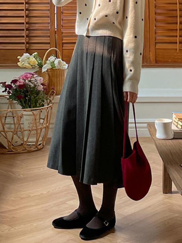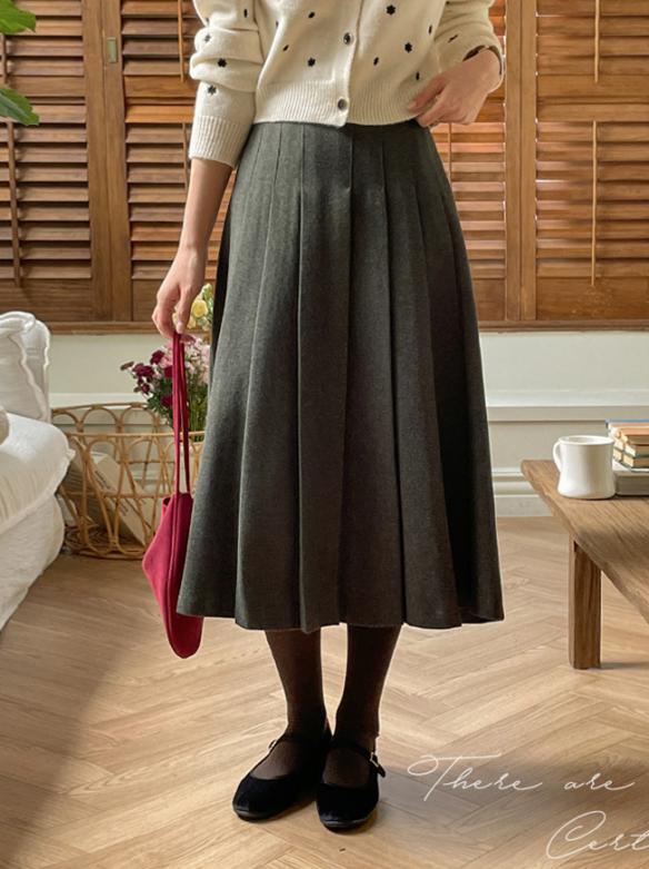 特*深灰1 正韓 質感高腰褶線柔軟毛呢長裙
