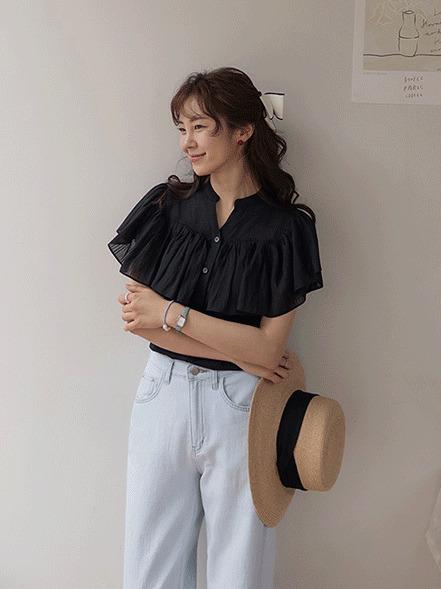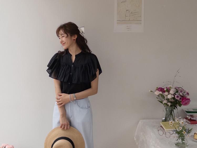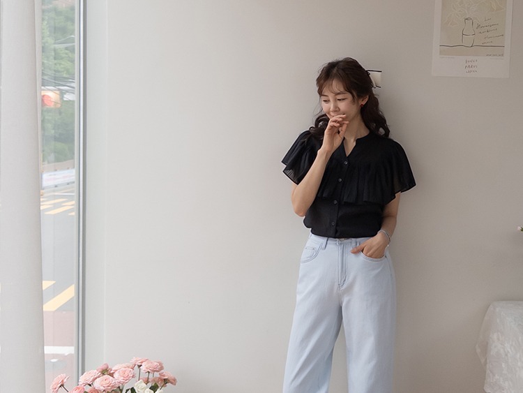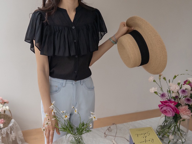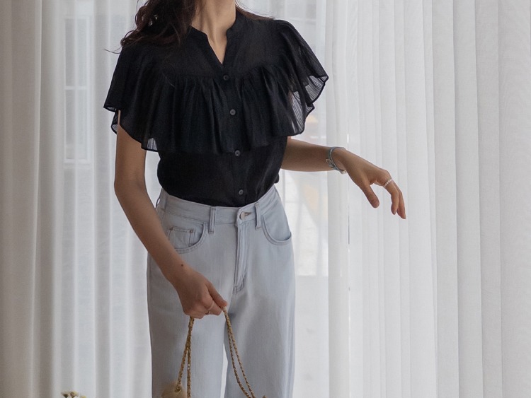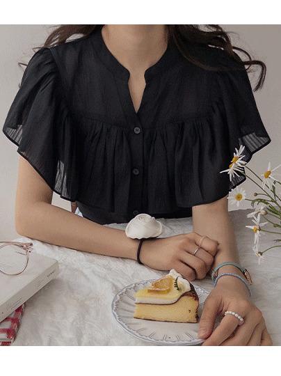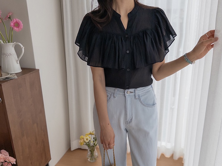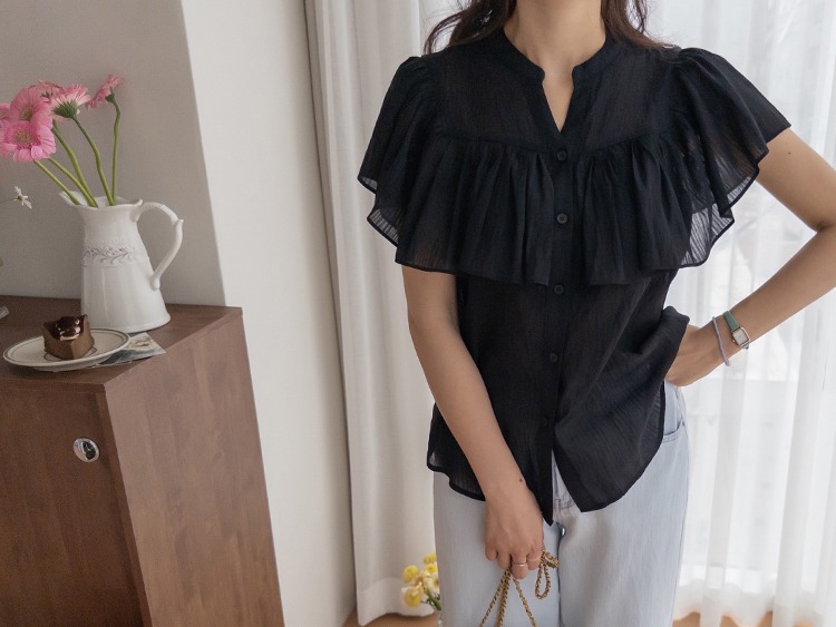 正韓 微透感柔美荷葉襯衫