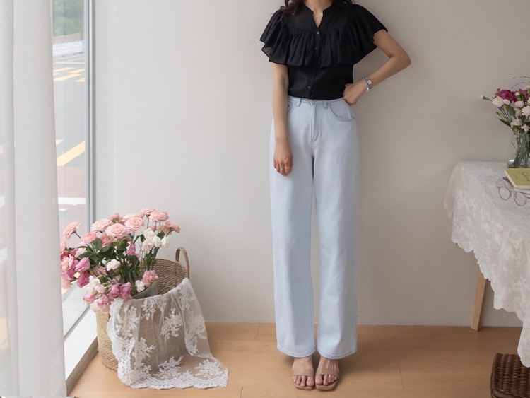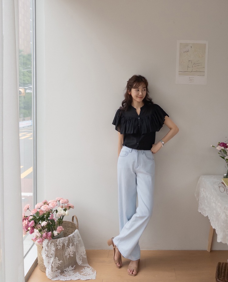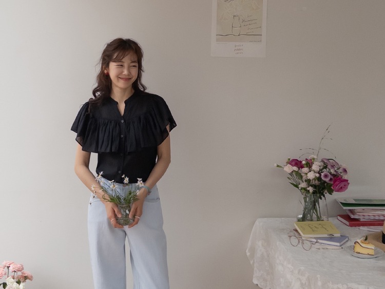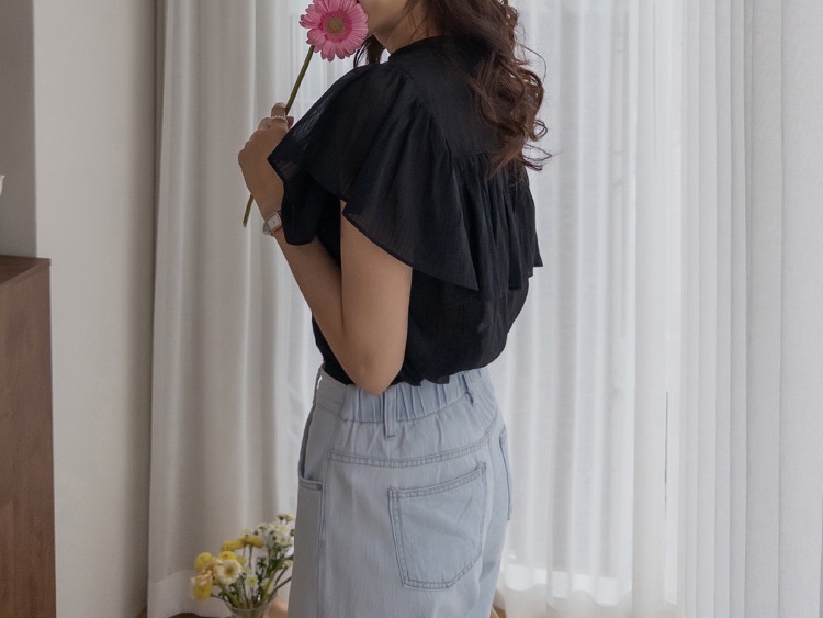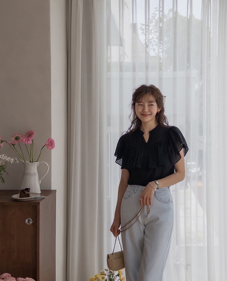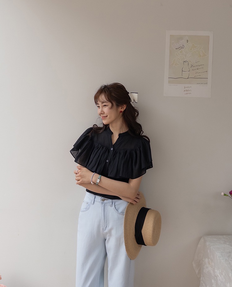 正韓 微透感柔美荷葉襯衫